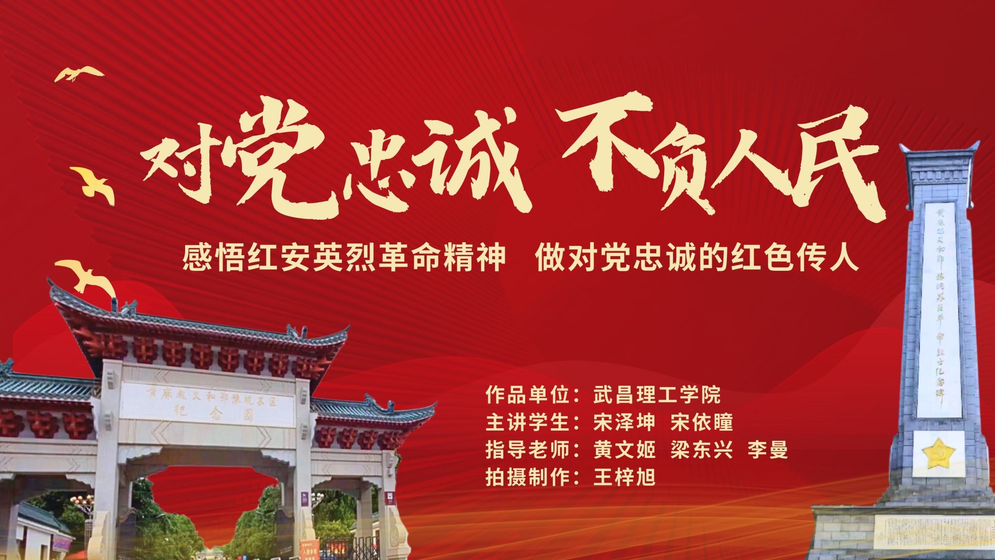 该获奖作品由pp电子网站黄文姬副教授、梁东兴教授,以及影视传媒学院党支部书记李曼副教授共同指导,由宋泽坤、宋依瞳主讲,王梓旭等同学参与摄制完成。作品聚焦“对党忠诚、不负人民”这一主题,走进位于“中国第一将军县”——湖北省红安县的“黄麻起义和鄂豫皖苏区纪念园”,讲述了红安革命斗争的光辉历程、杰出人物及巨大贡献,重点深情回顾了戴克敏、戴醒群、晏春山、王鉴、戴雪舫五位红安英烈的革命事迹。