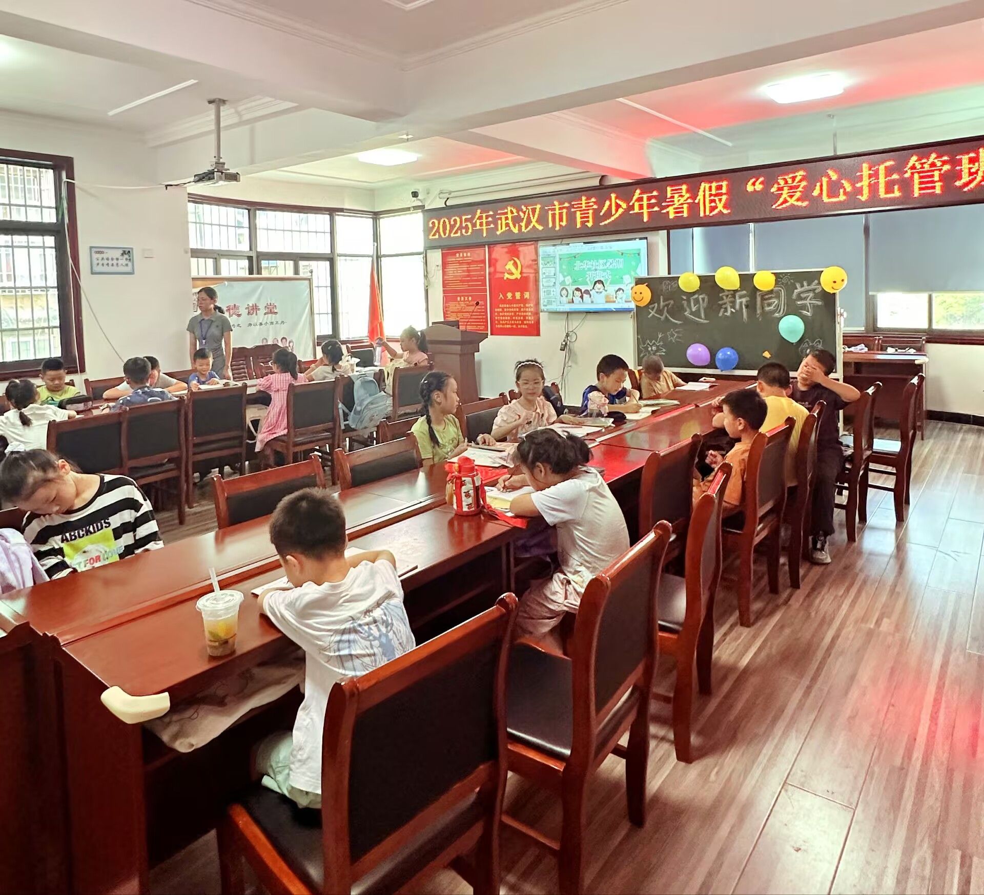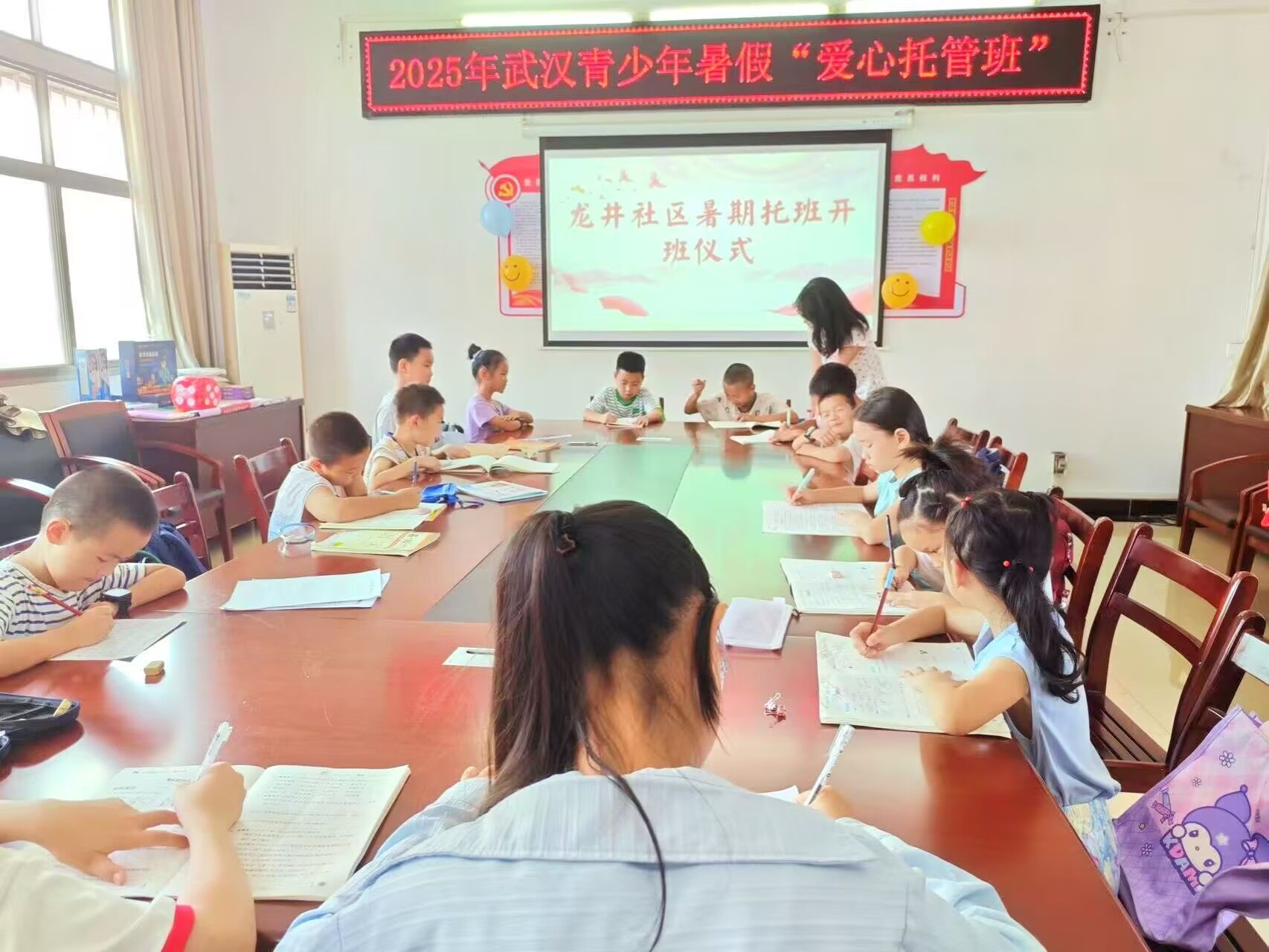 7月7日上午,pp电子网站“青春健康·守护花蕾”暑期支教志愿服务队在江夏区的幸福社区、青龙山社区和宁港社区三个社区暑假托管班正式开课。