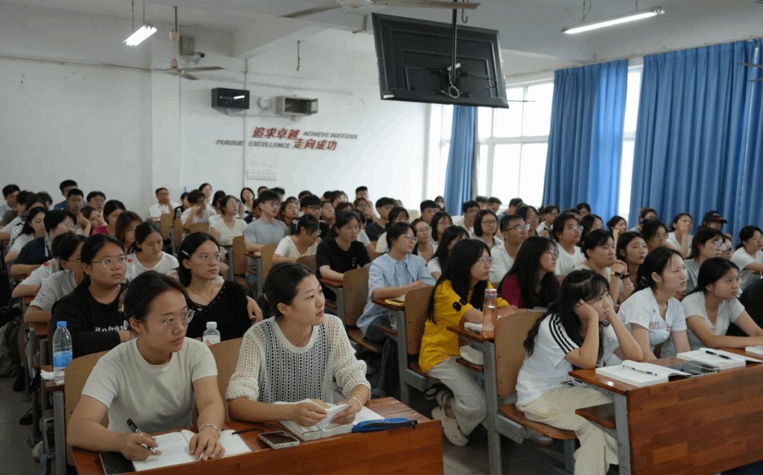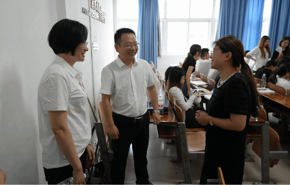 校领导与同学们一起聚精会神地听课,不时在笔记本上记录教学重点与师生互动亮点,细心观察学生的听课状态,全程沉浸式参与课堂学习。